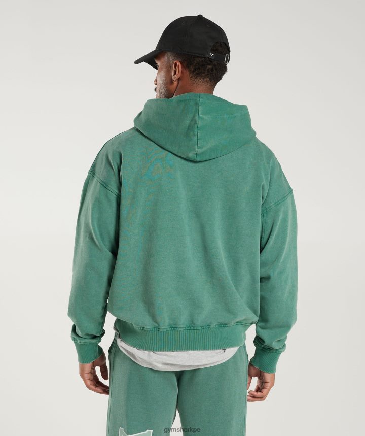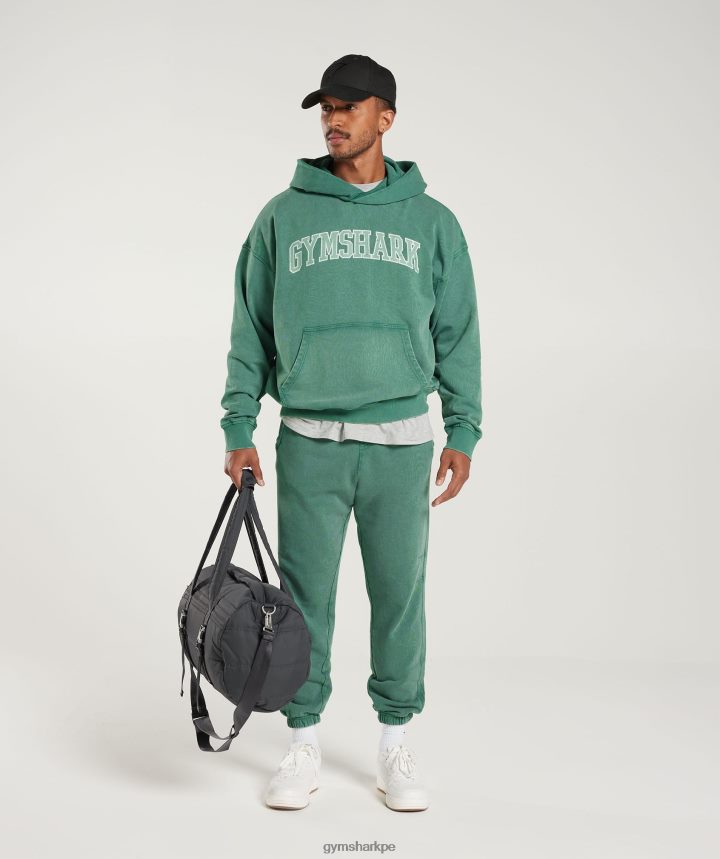 Gymsharksudadera colegial hombres tinta verde azulado/lavado ácido PFTJ2N875 ropa